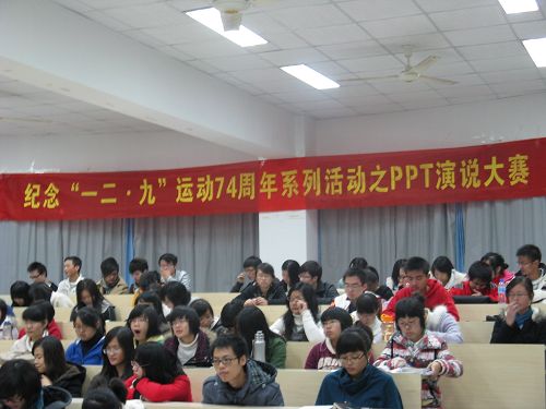 团委、学生会素质拓展部举办的纪念“一二·九”运动74周年系列活动之ppt演说大赛在人文楼203室准时开始。本次活动是麻豆视频