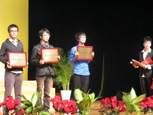 学生会在本次评比中更是脱颖而出,荣获了"标兵学生会"的称号,颁奖嘉宾校团委办公室主任屠霁霞老师为我院颁奖,并发表讲话,希望通过学生会评比,以评促建,各学院共同努力将温大的团学工作做得更好。演艺厅内掌声不断,颁奖典礼在各学院代表合唱的《爱,因为在心中》中完满落幕。