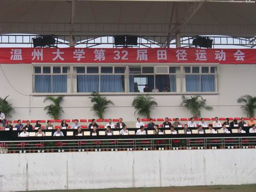 2009年10月28日至30日,温州大学第三十二届田径运动会在北校区体育场隆重举行,副校长任柏强老师担任开幕式主持,校领导陈福生、林娟娟、薛伟、赵敏、吴金法、陈安金等众多老师以及各部门、学院负责人均出席了开幕式。本届运动会历时三天,按育专业组、非体育专业组、教工组三组分类进行比赛,来自18个学院的代表队参加了本届校运会并展开了激烈角逐。我院学生与教工运动员也积极投身其中,学生中共派出31名运动员参与了21个竞技项目。