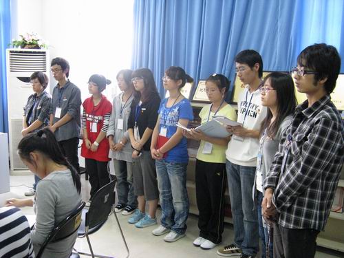团委副书记徐科等人的迎接下,考评小组一行人来到了学生会办公室,立刻受到了等候已久的院学生会各部门成员的热烈欢迎。简短的介绍之后,考评小组开始听取学生会各方面的工作报告,具体包括思想与组织建设、学风建设、宣传与网络工作、校园文体活动等多项内容,并配以照片、文件、报刊等电子和书面材料进行了详尽的说明。随后,考评小组针对这些介绍又提出了一系列的问题和建议,院学生会的有关负责人均一一给予了精彩的答复,同时虚心接受了考评小组提出的宝贵建议,并深表感谢。通过介绍,考评小组基本了解了我院在管理、制度、学风、宣传、活动等各方面的工作情况。整个考评现场气氛和谐而活跃。提问环节结束后,考评小组又参观了旁边的宣传部办公室。接待活动在下午4:00接近尾声。