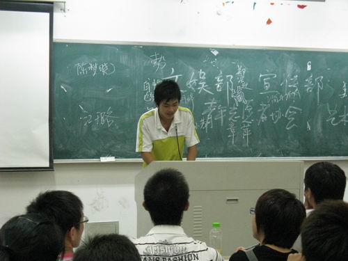 团委学生会招新工作正在这里如火如荼地进行着。来自5个班级的200余名大一新生都积极踊跃地参与其中,场面异常火爆。