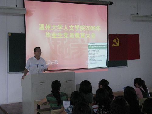 6月15日下午2:30,温州大学文人学院2009年毕业生党员教育大会在1-203准时召开,麻豆视频