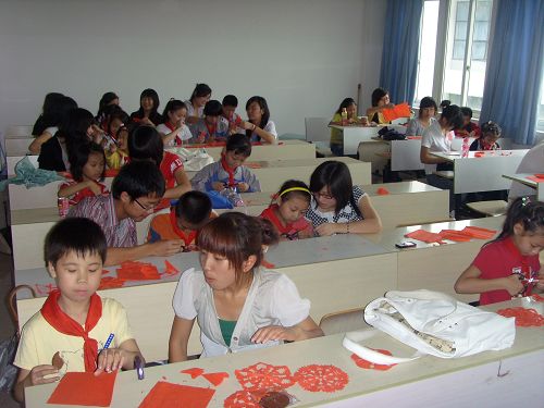 青年志愿者协会和民俗协会合作,于2009年6月3日下午,和益民小学21名学生一起开展了一次剪纸和参观民俗博物馆的活动。