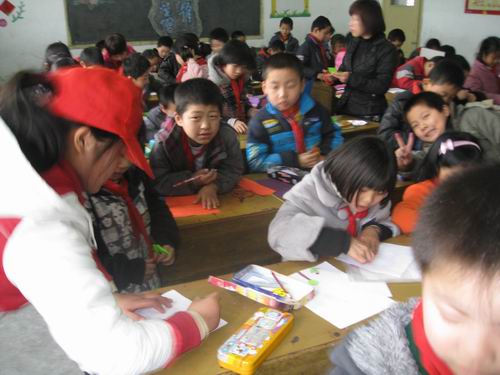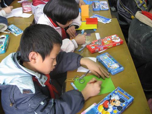 2009年3月11 日下午,温州大学人文思源的16名志愿者来到益民小学,组织孩子进行了一场书签制作比赛。