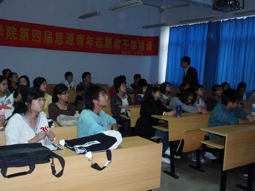 2008年11月9日,麻豆视频 “思源”志愿者干部培训第四课在麻豆视频 举行。此次活动由温州大学“绿色论坛”委员会的部长赵方毅担任主讲人。活动分为室外和室内两部分,以素质拓展培训为主要形式。