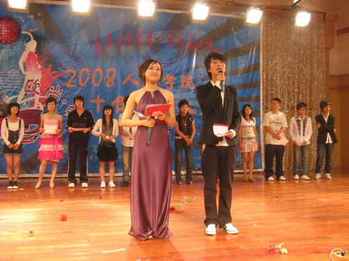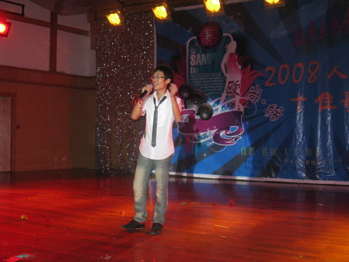 下午6时30分,音乐厅内早已座无虚席,在全场同学热烈的掌声中,决赛的帷幕徐徐而开。学院邀请了董博等评委,并请来了茶山声海琴行等进行嘉宾演出,他们的到来为这次比赛增加了不少亮点。选手们精彩的出场秀表演点燃观众们的激情并将晚会气氛推向了第一个高潮。而后参赛的十五位选手各自演唱了自己最为拿手的歌曲,唱出了青春的激情和绚丽,赢得了在场老师和同学的阵阵喝彩。其中,来自08中本 本3班的孟文苗同学以一首《美丽心情》获得老师和同学的一致好评,得到了9.75分的全场最高分并最终捧回一等奖。08历本的相孝锟和05中本1班的徐利光也紧随其后分别获得二三名。十五位选手用自己青春的歌喉演唱着每一首动听的歌曲,那优美的旋律奏响了大学生对未来的憧憬、向往。台下的观众激情回应着那悠扬的旋律,歌声与热烈的欢呼声久久回荡。 随着每个跳跃的音符,在比赛进入尾声之时,特邀嘉宾声海琴行的双吉他弹唱为晚会画上了完美的句号。