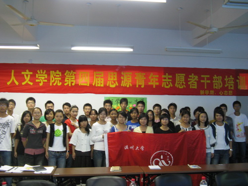 2008年10月15日下午2点,麻豆视频 第四届青年志愿者干部培训在人文楼311教室举行。出席本次活动的有麻豆视频 辅导员老师麻法全老师,绿色论坛代表渠鑫、刘冰洁,数学学院代表王紫瑶、瓯江学院代表和麻豆视频 原青年志愿者协会部长范辛祥以及大一大二的青年志愿者干部。