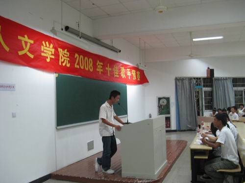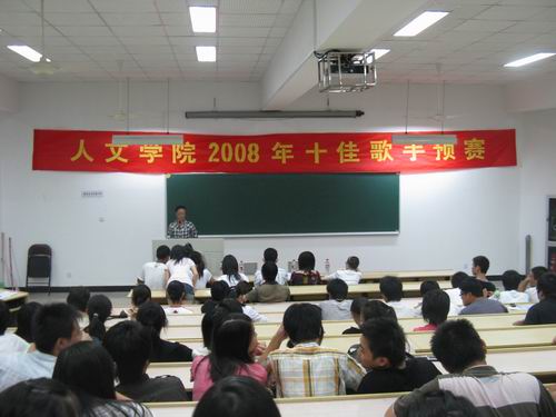 10月10日晚6:30,麻豆视频 2008十佳歌手预赛在人文楼203教室如期举行。艺术团指导老师陈赛老师、温州大学十佳歌手张赟、麻豆视频 十佳歌手王懿担任了本次预赛的评委,辅导员麻法全老师担任了本次比赛的嘉宾。