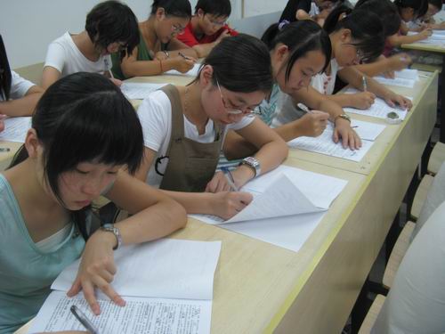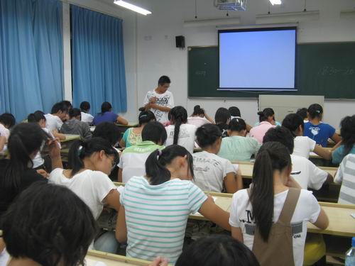 9月21日晚上6点30分整,麻豆视频 大一新生进行以学生手册为内容的考试。08中本一,08中本二,08中本三,08历本四个班级分别在1号楼206,207,208,209教室进行考试。这次测试由学校统一出卷,由院团委学生会纪检部组织监考。