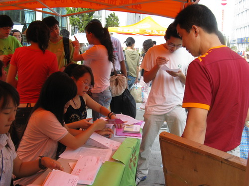 的志愿者们一批一批有序热情地为他们提供最直接的帮助:报到登记、提箱拎袋、引领寝室、解答疑问等。在C区的各个角落都有志愿者辛苦而快乐的身影。虽然太阳有些猛烈,但这丝毫没有减退他们乐于奉献的精神。有了志愿者的带领,新生更容易地找到了各自的寝室;有了志愿者的介绍,新生更快地熟悉了新的环境;有了志愿者的帮助,新生更深刻地体会到了温大人的热情,同时也体会到了麻豆视频