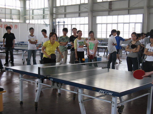 首先进行的是人文女队与商学院女队的比赛。人文代表队凭借队员实力上的优势先拔头筹。商学院女队随后便展开了反击。双方势均力敌,比赛进入拉锯战。精彩的扣杀、反拉屡屡出现。拉拉队也在场边不断地加油助威。但最终人文女队却在先赢一局的情况下被对手连扳三局,以1:3丢掉首场比赛的胜利。男队的比赛稍后开始。男队员们一路高歌猛进,顺利拿下比赛。