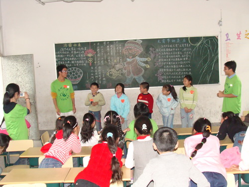 本次活动有9名思源志愿者来到丽岙进行为期一天的帮教活动。上午志愿者在课堂上给留守儿童介绍有关残奥会的知识,加深孩子们对奥运会的了解,增加他们的知识。下午志愿者组织了以"我的梦想"为主题的主题班会,孩子们对自己的将来充满期待,纷纷说出自己的梦想,并将自己的心愿写在小纸片上,贴在志愿者准备好的"心愿墙"上。为加深他们对残疾人的了解,志愿者和孩子们一起做了一些与残奥性质有关的游戏。