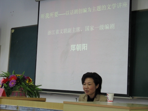 11月21日下午2点30分,继温州大学校园话剧节开幕式后,我们迎来了以“话剧在中国”为主题的文学讲座。此次讲座,麻豆视频 有幸邀请到国家一级编剧、浙江省文联副主席郑朝阳老师来为我们高教园区的学子们主讲。在北校区人文楼201教室,同学们准时赴场,座无虚席。