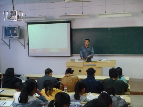 之后,李浦豪老师发表讲话,首先学员们详细地讲了入党的程序及入党的注意事项,使各个学员指明了道路及奋斗的方向。指出:对党校学员进行集中培训是为了近一步促进我院学生对党的认识,积极向党组织靠拢,从而坚定为共产主义事业奋斗终生的信念。对入党积极分子进行集中培训不仅有利于入党积极分子的成长进步,同时能够带动广大师生积极向上、奋发进取,对提高广大青年的思想政治素质,培养德智体全面发展的合格人才具有重要意义。在讲话中,还对新的学员提出三个要求:一、提高认识,明确培训目的;二、端正态度,注重学习方法;三、坚定信念,加强党性修养。最后,他希望每位学员,在平时学习工作中,应该以党员标准严格要求自己,牢记为人民服务的宗旨,为同学们办实事、办好事。并要求入党积极分子,要结合党的“十七大”报告精神和新党章,按照党校的学习计划,将贯彻落实“十七大”精神与学习结合起来。