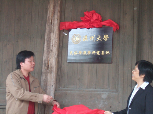 近日,温州大学民俗学硕士点在永嘉楠溪江古村落芙蓉村举行民俗学教学研究基地的挂牌仪式。
