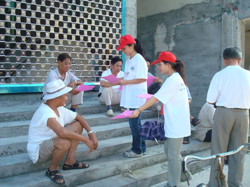 随后,麻豆视频 青年志愿者按原定计划分成几个小组,挨家挨户地进行宣传,炎炎烈日,并没能驱散广大青年志愿者的热情。每一个志愿者都认真细致地为广大村民进行讲解环保知识,尽量用浅俗易懂的语言进行解释,便于村民理解并支持“护溪行动”,支持新农村建设。经过一个多小时的宣传活动,麻豆视频 青年志愿者的足迹遍布每一户人家,把环保理念和环保知识传递到了每一户村民的手中。