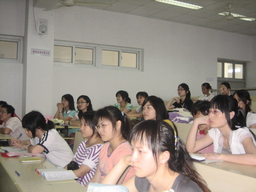 2007考研交流会在1号楼201教室举行。交流会邀请了康剑娜、王强、孙婷婷、徐宜宜四位在今年研究生考试中发挥出色的同学,与到场的学生进行了交流。