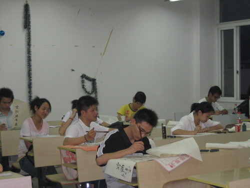 “百年语文”系列活动之书画大赛决赛在北校区1-307拉开帷幕。16名比赛选手是由专业老师从初赛的众多参赛者中评选出来的。