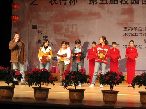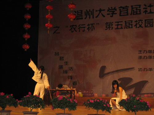 此次晚会是成就与欢乐的一场盛宴。音乐学院星光艺术团的倾情演出以极富青春热情的爵士舞拉开了此次晚会的序幕。叶世祥院长上台致新年辞并对温大话剧寄予了厚望。在“DV再现”环节中,麻豆视频 精心拍摄、剪辑而成的DV片段展示了话剧节的前前后后,生动形象的使话剧节再次重现观众面前。随着晚会精彩节目的进行,话剧节一个个大奖也各自花落名家,农历剧社选送的《父与子》成为此次晚会的大赢家,一举囊括了最佳导演奖、最佳男演员奖、话剧表演剧目一等奖等多个奖项。05中本3班的徐海燕同学凭借在《错爱》中的出色表演而摘走了最佳女主角的桂冠。