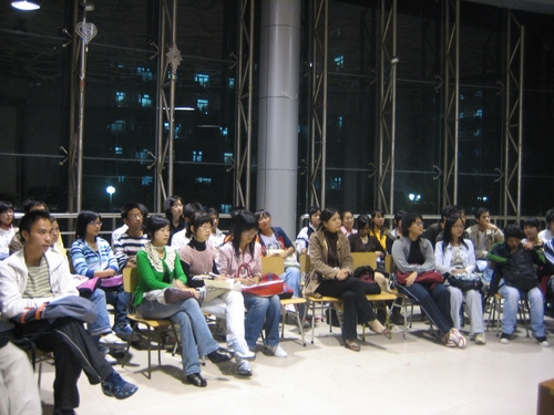 11月23日晚上六点,温州大学2006年校园话剧节之听我所要——话剧讲座在北校区行政楼玻璃大厅开讲,由农历剧社的指导老师高光明老师主讲,全场座无虚席。高老师以“从中国近代话剧(歌剧)看传统文化的影响”为主题,向在座的同学介绍了话剧在中国的发展和影响以及话剧表演的一些要求。