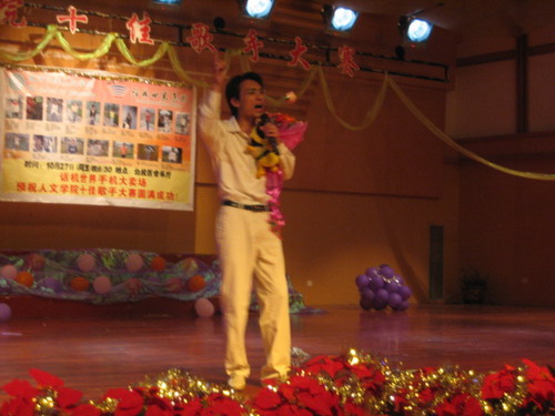 正当气氛热闹喧嚣时,一号选手朱虹安静恬美的声音如清风一样沐浴过观众的心,大家屏气凝神地享受她带来的《The day you went away》,青春旋律刹时响起来。一首悠扬婉转的《美丽心情》,一首慷慨激昂的《从头再来》,一首清新脱俗的《那么骄傲》,一首唱功绝佳的《值得》,一首深情似水的《温柔》,加上嘉宾曹建权的萨克斯表演与陶源的歌曲《手放开》,使得台上的高潮一浪翻过一浪,观众与之呼应争先恐后地献花,人潮涌动排队上台给喜爱的选手一个拥抱,或是挥舞手中的荧光棒,响彻云霄的掌声,大赛异常成功,赢得了其他学院众人的一致好评。