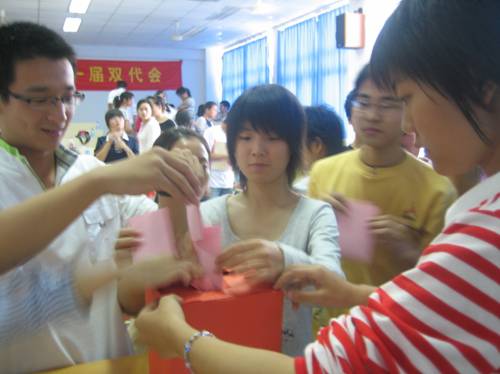按照大会筹备委员会研究决定的有关代表名额分配和代表产生办法的要求,经过团支部、班级推选代表候选人;学院团委、学生会考察酝酿提名第一届委员会委员候选人;经过学院52名团员代表和62名学生代表进行差额选举,大会产生了麻豆视频