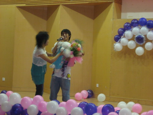 10月22日晚6点半,比赛如期开始,选手们陆续登台,演唱自己的拿手曲目,观众们也十分投入:鼓掌、尖叫、献花、拥抱……纷纷给他们所钟爱的选手以最热烈的支持。当3号选手,来自汉语言文字专业的研究生任翔宇上台演唱《精钟报国》时,现场掀起了一个小小的高潮,大家都被他洪亮的声音和如虹的气势所震撼。他的精彩演出也使他顺利进入了决赛。另一个高潮则是由来自06中本四班的李传锐掀起的,他为大家带来了周杰伦的一首非常有难度的《夜曲》,流利的Rap,华丽的高音,给他赢得了满堂喝彩。毋庸质疑,他也顺利地进入了决赛。除了他们,还有不少选手也给大家带来了很大的惊喜,也许他们并不是最棒的,但可以肯定,他们是最用心的。