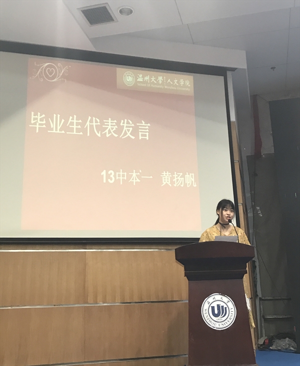 典礼从奏国歌、唱国歌开始,伴随全体奏唱国歌,典礼进入了庄严的时刻。首先是蔡贻象院长致辞,他表达了对同学们顺利毕业的祝贺以及未来工作生活的美好祝愿。他说:“毕业生们走进社会后都会有不可回避的迷茫,我们要把个人的发展和国家的发展相联系,去把握时代提供的辉煌的机会。毕业不是句号,而是逗号,是破折号。在未来,我们要以更积极的态度投身工作和生活,以更珍惜的心情欣赏自己内心的纯净。”优秀毕业生黄扬帆同学代表全体同学表达了对麻豆视频