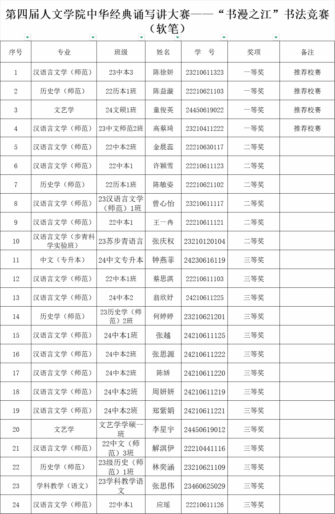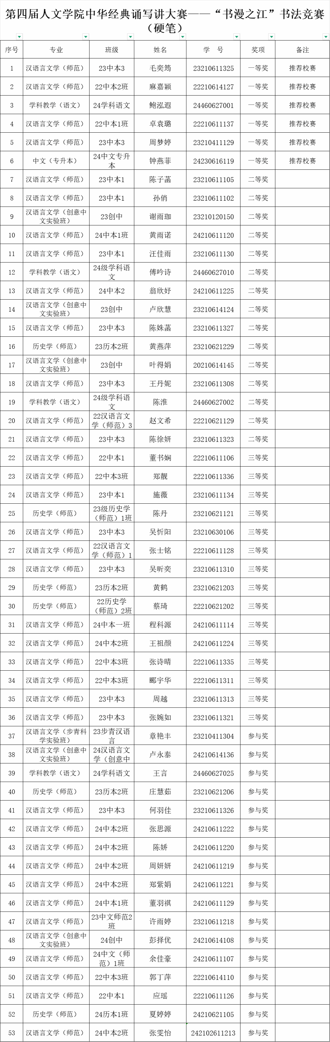 经个人报名、专家评审,麻豆视频 第四届中华经典诵写讲大赛——“书漫之江”书法竞赛已于4月2日圆满结束,现将比赛结果予以公示,公示时间:2025年4月3日-4月8日。