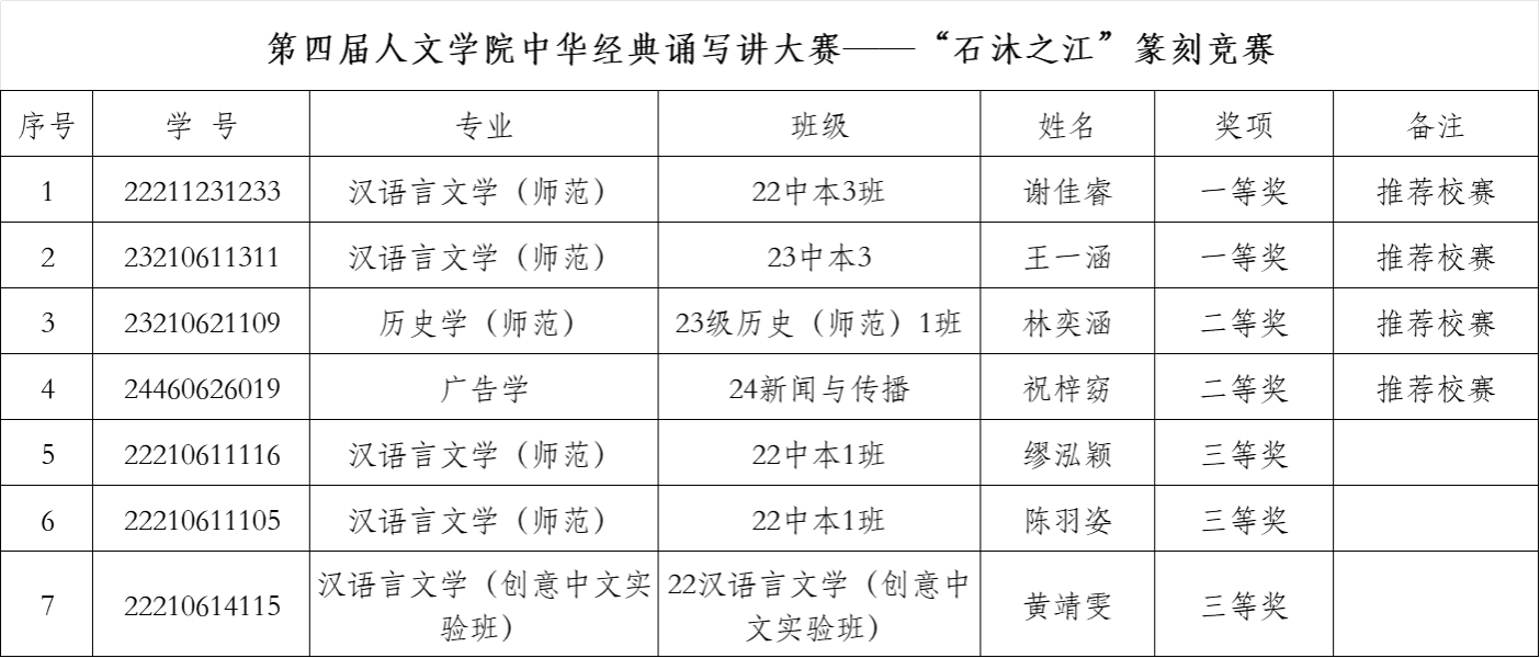 经个人报名、专家评审,麻豆视频 第四届中华经典诵写讲大赛——“石沐之江”篆刻竞赛已于4月2日圆满结束,现将比赛结果予以公示,公示时间:2025年4月3日-4月8日。