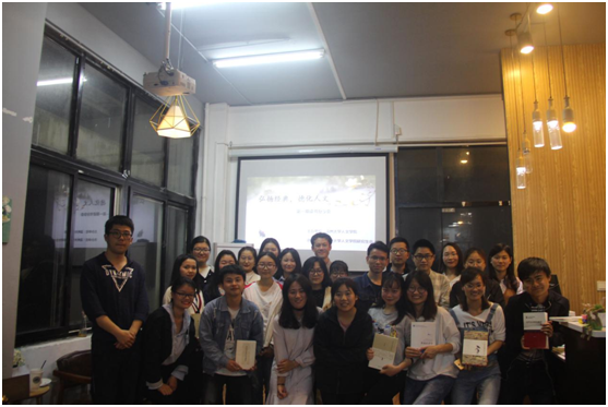 2018年4月14日晚,我院于北校人文楼兆文智创(一楼)举行“弘扬经典,德化人文”——第一期读书分享会。我院2016级、2017级二十余位横跨十几个专业的研究生读书爱好者参与了此次读书分享会。