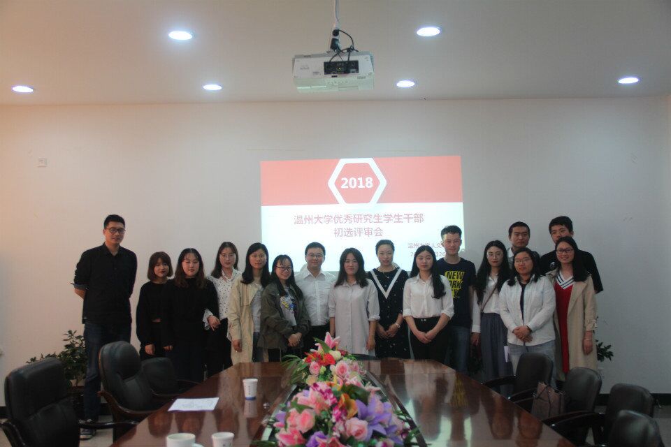 为进一步加强研究生思想政治教育,充分发挥优秀学生干部的模范带头作用,促进研究生工作的顺利开展,根据《温州大学优秀研究生评审办法》文件精神,我院于4月26日下午在人文楼213会议室召开了2017/2018学年研究生优秀学生干部初评现场评审会。本次评选活动由研究生辅导员李丹萍主持,我院党委副书记朱启鑫、学生科副科长倪晓晓、学生科副科长刘纪峰以及研究生辅导员李丹萍担任教师评委,8位学生代表担任学生评委。来自研二、研一各专业的14名同学参选。