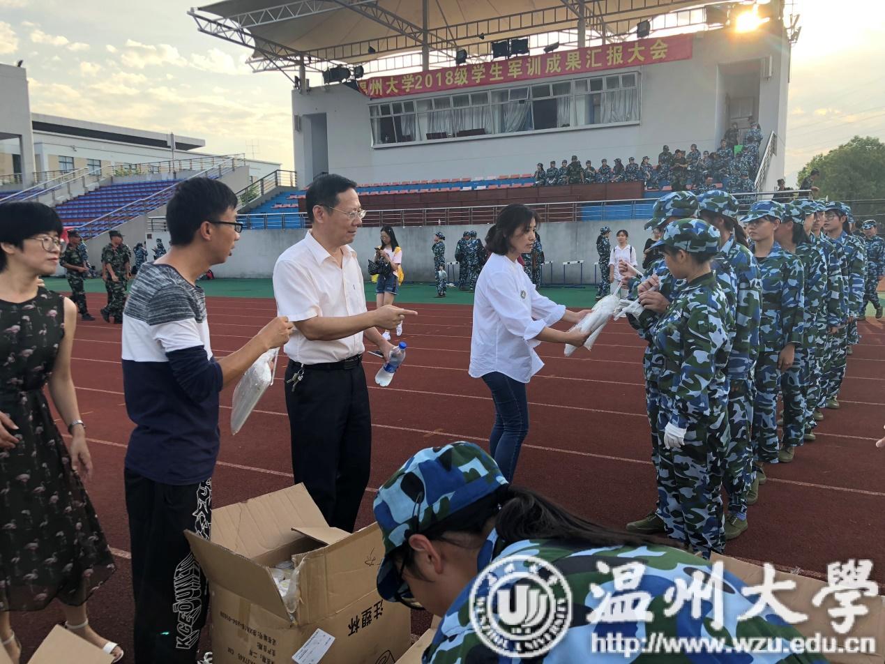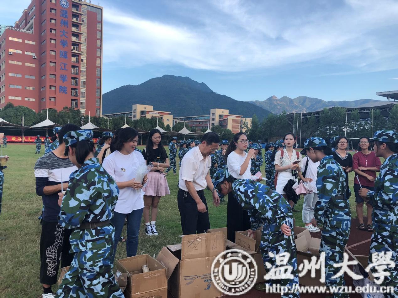 2018年9月20日下午,我院副院长毛继光携辅导员倪晓晓、江萍老师及新生各班班主任和班助一道,为我院参与军训的新生送去清凉饮品。在新生军训期间,持续的酷暑磨炼着新生的意志,为确保军训正常进行,缓解新生身体与心理上的压力,毛院长和老师们贴心的送上奶茶。我院莘莘学子们列着整齐划一的方阵,井然有序地领取各自的饮品。这为挥汗如雨的新生们带去炎炎夏日的凉意,体会到了学院深深的关爱。