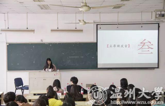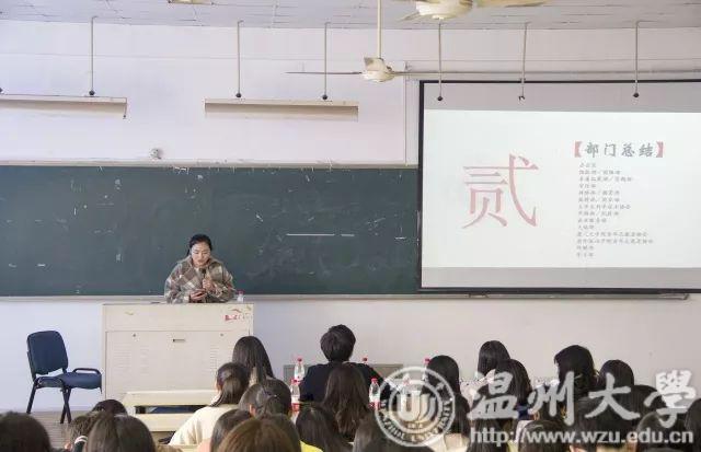 紧接着,各部门对本学期进行了工作总结,这体现出了学生会成员们齐心协力、不断克服工作中的困难的工作精神。 最后,主席团代表发言。学生会主席黄舒怡表达了对各部门在本学期工作中辛勤付出的感谢,并对我院未来的发展充满信心。团副王颖借用毛泽东的八字方针“调整、巩固、充实、提高”对学生会各成员提出工作要求。