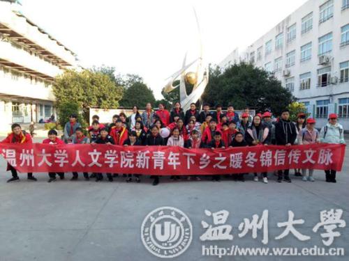 2018年1月10日,由温州大学人文思源青年志愿者协会组织开展的新青年下乡之暖冬行动于乐清市芙蓉镇雁湖九年一贯制小学如约展开。本次活动以“云中寄锦信,民俗寻文脉”为主题,一方面,旨在让小朋友们认识丰厚博大的中华文化,吸收民族文化智慧,培养热爱祖国语言文字情感;另一方面,也是为了全面提高大学生的综合素质和实践能力,促进大学生社会责任感的形成。在志愿者们的积极参与下,本次活动取得圆满成功,志愿者们与小朋友从这次活动中都获益匪浅。