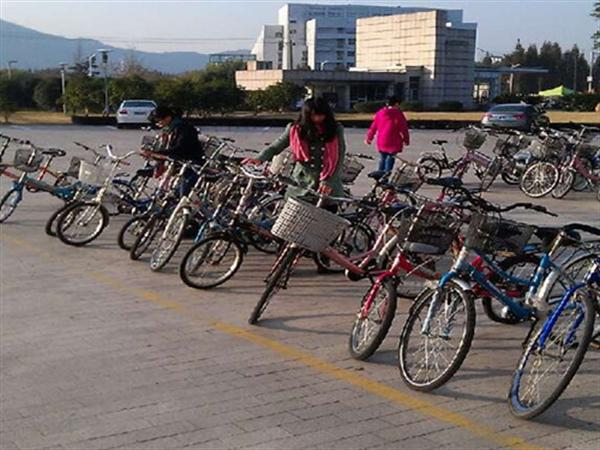 早自习下课铃刚结束,大一文督成员就纷纷来到了一楼自行车停放处,趁着课间休息时间开始动手整理停放混乱的自行车。男生的力气比较大,他们抬起自行车,将自行车换了个方向或是将自行车靠得更近,缩小空隙,为晚来的同学提供更大的停放自行车的空间。女生的力气比较小,所以她们的工作主要是调整自行车的摆放角度,使这些车能够排成一条直线。由于有一些同学来得比较迟,文督成员在整理完原有的自行车后,又耐心地整理了一下刚刚停放的自行车。在文督成员辛苦努力的工作之后,人文楼停放的一排排自行车看上去整齐了很多。在大学里,自行车是我们主要的交通工具。它是我们日常生活中重要的一部分。所以,在公共场所,我们要记得将自行车按规定停入指定区域,这样,既方便他人,又能方便自己。