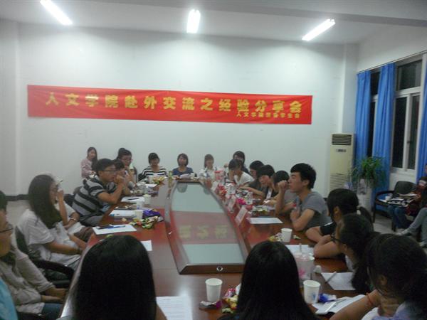 交流会以茶话会的形式与同学亲切交谈,主旨在于分享赴外交流的经验以及有趣的学习、生活经历。在活跃的气氛下,王程波同学首先介绍了他在台湾不同寻常的的学习生活,一切显得独立创新而更有挑战性。在提到他在台湾骑单车环岛六日的经历时,全场的同学们更是惊叹不已,连连鼓掌叫好。紧接着方之森和蔡佶妤同学提到了台湾的众多令人垂涎的小吃以及另她们流连忘返的景点,给在场的同学们展示了宝岛台湾的另一面。在他(她)们生动幽默的讲述下,同学们似乎都沉浸在了台湾的精彩生活中。接下来蔡珂又给大家带来了全新的生活体验。初到美国的经历以及融入美国学习生活的过程,说起来真是酸甜苦辣各种不漏,个中滋味难以言表。当然其中不乏一些趣事,使得教室里欢声笑语不断。也使我们的同学们进入另一个不同的世界。