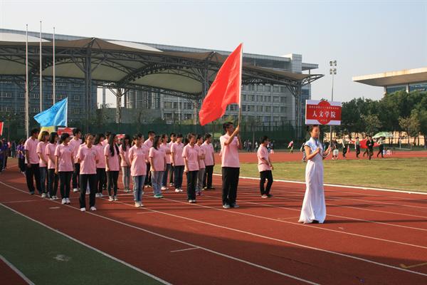 的方列便齐刷刷地出现在塑胶跑道上。“人行天下,文灿古今”,这附有人文蕴涵的口号响彻晴空。人们学院的同学们迈着一致的步伐行列过主席台,为运动会开幕式送来了习习清风。有力的步伐、一致的院服、饱满的精神、响亮的方号,各学院方队各具特色的展示赢得了看台上的一阵阵掌声。