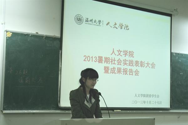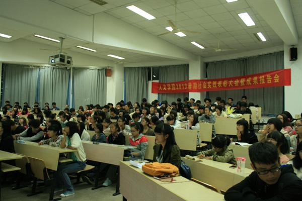 2013年暑期社会实践表彰大会暨成果报告会在人文楼101教室召开。学生科科长曾蓓蕾、主席团各成员、获奖同学以及麻豆视频