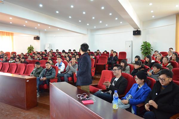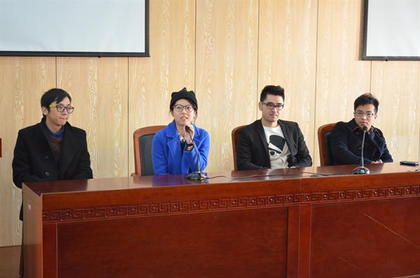 副院长刘建国老师首先代表学院致辞。刘老师以他特有的沙哑而激情四射的声音欢迎四位优秀学长回母校与学弟学妹们分享他们的学习和工作经验。他还很自豪地向校友们介绍了广告学专业最近几年蒸蒸日上的发展情况。与三年前相比,广告专业已经今非昔比,教学团队不断壮大,广告学生屡屡收获全国大奖,成功地列入校级重点(特色)专业、校卓越人才培养综合改革试验区项目、获国家财政专项资金资助、设立全国首个文化创意学硕士点,这一切都说明,广告学专业已经成为温州大学一个富有生命力和发展前景的专业。刘老师的精彩致辞,让在座校友和同学们都为自己的专业而骄傲。
