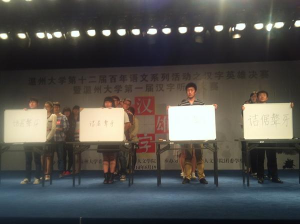 据悉,除了汉字英雄之外,温州大学百年语文系列活动还包括初上讲台、文化长廊等子活动,这些活动不仅仅是将语文的魅力展现在大家的面前,而且还使大家拥有了发现语文魅力的眼睛,从而去感受学习生活中的韵味和美好。