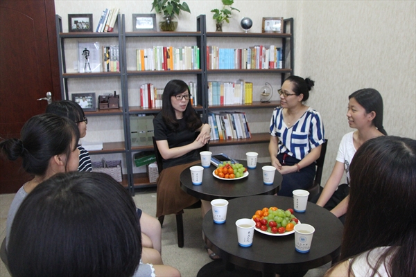 2015年6月26日18点30分,我院“罗山论道”师生沙龙活动第三期在人文楼罗山小筑内举行。本期主题是“女大学生的情感密语”,邀请到了学院党总支书记吴静老师作为嘉宾,曾蓓蕾老师作为主持人,与6位同学共同畅谈感情,畅聊人生。与往期不同的是,本期活动为“女生专场”。