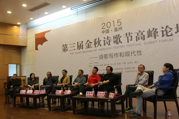 、瓯海区委宣传部、瓯海区文联主办,坡度诗社、温州晚报、温州市图书馆等单位共同承办的“2015中国·温州第三届金秋诗歌节”在温州大学育英图书馆隆重拉开帷幕。著名诗人雷平阳、池凌云、慕白,作家马叙、潘维,青年诗歌评论家霍俊明、王士强及省内其他众多诗人应邀嘉会,共飨这场诗的盛宴。