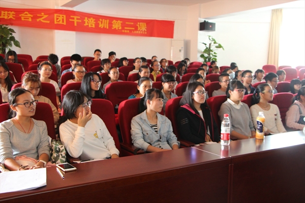 第十三届团学干部培训班第二课在人文楼203报告厅举行。本次团干培训由我院与外国语学院共同举办,由校团委办公室主任王晓华老师主讲学生干部情商提升的话题。我院沈亦炜团副、组织部副部长严文涛以及全体人文团学新干部参加了此次培训。