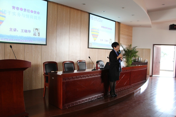 在人文团学组织部副部长严文涛同学的简单致辞之后,王晓华老师展开了以“团干实务与情商提升”的专题演讲。她从自我情绪管理能力和人际管理能力入手,深入地分析了情商提高所必需的一些素质。她要求团学干部能及时意识到自己情绪的变化,对自己有自信并且能做出精确的自我评估,也强调了情绪自制力、适应力与成就动机在与人相处中的重要性。同时,她也就社会技能问题对干部们提出了一些建议和要求,希望大家能够打造自己的工作风格。最后团干培训在同学们热烈的掌声中圆满结束。