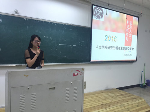 年年岁岁花相似,岁岁年年人不同,金秋九月,麻豆视频 迎来了新一届的2016级研究生,2016年9月19日晚,新老生交流见面会暨研会赵信动员会在人文楼201教室举行,2016级全体研究生、2015级各专业学生代表以及研会各部部长参加了本次交流会,辅导员刘纪峰老师出席了本次交流会,会议由研究生会主席刘美华主持。