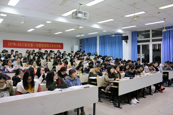 2016年12月12日18:30,我院于人文楼202教室开展了教授博士论坛讲座。本次邀请了罗筱玉教授,为同学们讲述中唐文化的雅俗衍变。我院学生积极参与,全场座无虚席。