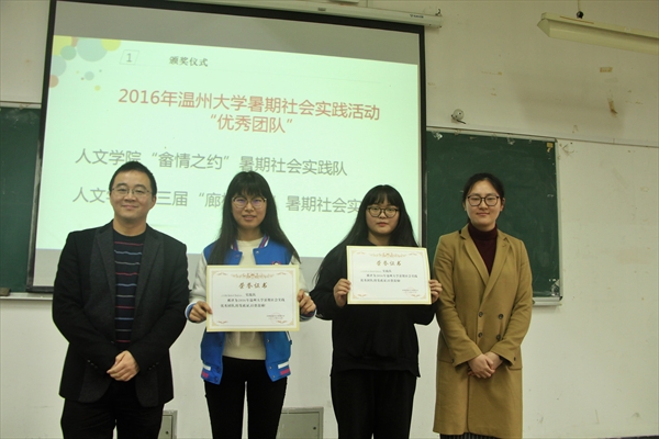 首先,主持人向同学们介绍了暑期社会实践的概况,展示了优秀实践队的成果。在同学们初步了解社会实践后,由朱书记、邢老师及主席团为2016年优秀暑期社会实践队颁奖,其中包括优秀团队、先进个人等奖项。同时,我院获得2016年温州大学暑期社会实践活动“优秀组织奖”。在获奖团队和个人发言环节中,同学们进一步了解暑期社会实践。其中廊桥遗梦实践队代表提到,在暑期社会实践策划中需注重创新性、可行性等。发言的同学们都热情地介绍着自己的团队、分享着经验。在接下来的关于暑期实践趣味相声展示中,观众席欢笑声一片。最后,朱书记讲话并总结我院暑期社会实践,它的三项功能分别为受教育、长才干、做贡献。而要做到这样首先需要准确定位,第二精心策划,第三分工合作,第四注重宣传,最后需要不断地总结创新。
