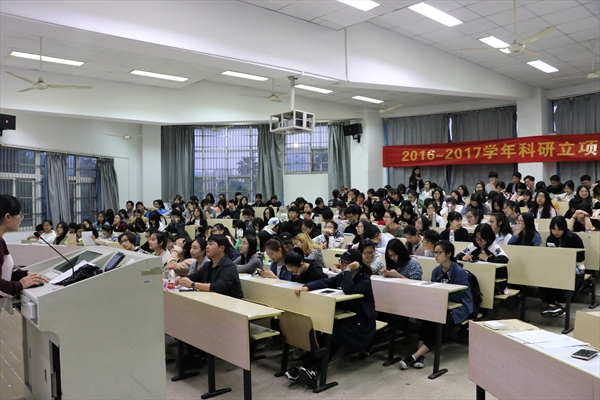 2017年4月23日18:30,我院于人文楼101教室举办科研立项动员大会。本次大会邀请了团学主席团以及几位科研立项申报成功的同学出席,大一同学全体参加。