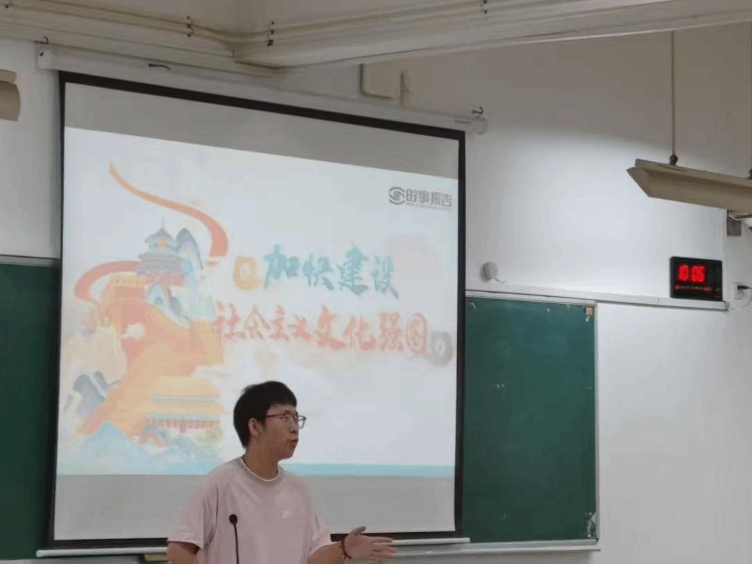 刘恭宇老师在“加快建设社会主义文化强国”主题授课中,从文化传承创新、文化产业发展等维度切入,结合中华优秀传统文化传承创新案例,对文化数字化、文旅融合等政策实践进行了深度解读。同时,刘老师着重强调青年在增强国家文化软实力过程中的关键作用,鼓励大家深耕文化领域,将专业知识运用到文化强国建设中,以人文力量推动文化繁荣发展。